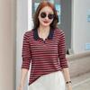New Striped Polo Shirt Plus Size Women's Autumn Long Sleeve Base Korean Style Casual Ladies T-Shirt Age-Reducing Top Turn-Down Collar