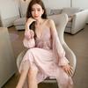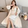 Neuer französischer reiner Wunsch-Wind-Pyjama mit Brustpolstern für Damen, langärmelig, Netzgarn, durchbrochene Träger, Schlaf + Herbstanzug, Loungewear