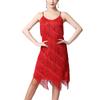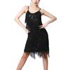 Damen Glitzerndes Pailletten Fransenkleid Samba Tango Lateinischer Tanz Kostüm Verstellbare Spaghettiträger Quastenkleid