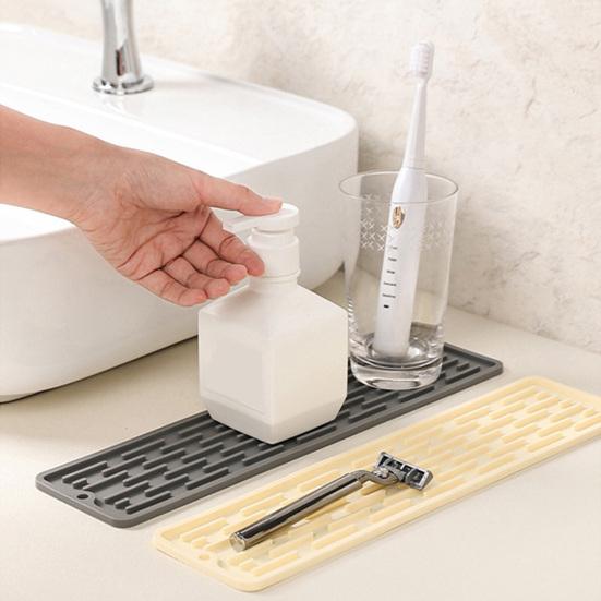Anti-slip Silicone Faucet Mat Drain Pad Kitchen Countertop Protector Wrap-around Design Waterproof Sink Drying Soap Toothbrush