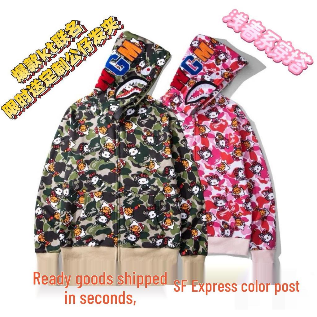 Herren- und Damen-Kapuzenjacke mit lässigem lockeren Schnitt und Hai-Hello-Kitty-Print