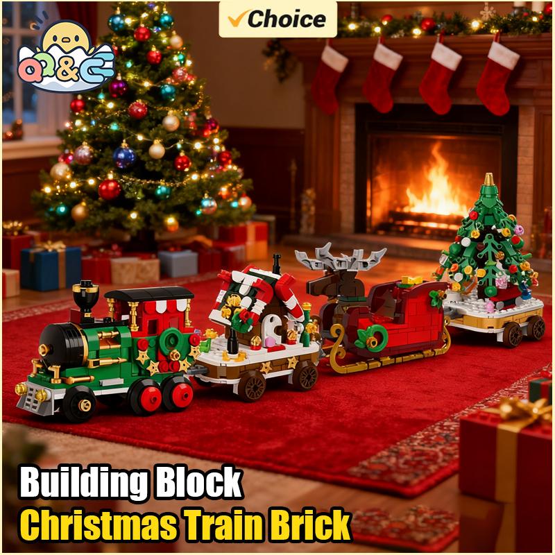 Christmas Train Santa Claus Sleigh Carriage Christmas Tree Building Blocks DIY Assembly Children Bricks Toys for Kids Xmas Gifts
