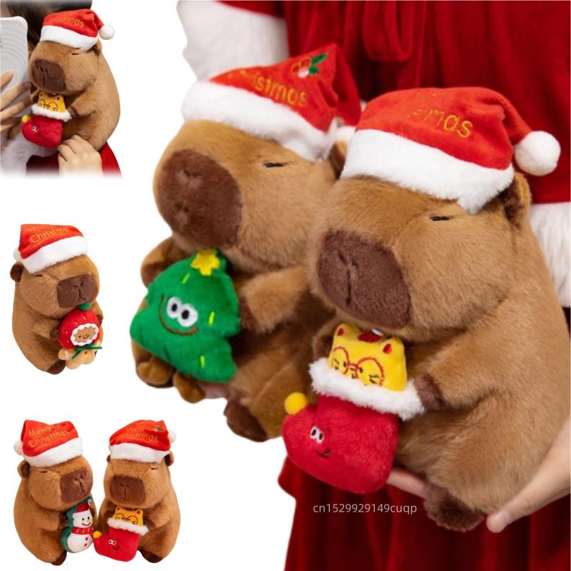 20cm Weihnachtskapybara Plüschtier Kissen Lebkuchen Schneemann Baum Socken Kapybaras Plüschtier Heimdeko Weihnachtsgeschenk Für Kinder