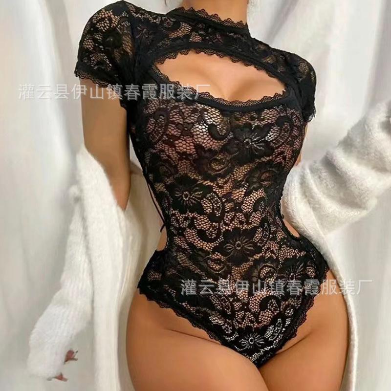 Spitzen-Patchwork Sexy Spaß Einteiler Transparenter Enganliegender Spice Girls Formgebender Einteiler Damen