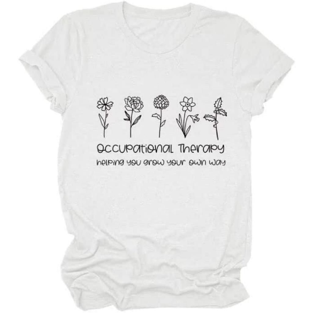 PUGIAF Womens Therapist Shirt Occupational Therapy Helping You Grow Your Own Way Mental Health Shirts Short Sleeve Tee
