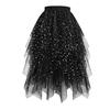 Sternenhimmel-Muster Design: Gefertigt aus Netzmaterial, verziert mit zahlreichen funkelnden weißen Sternenmustern, erzeugt dieser Rock einen romantischen und verträumten „Sternenhimmel“-Effekt.. Das visuell fesselnde Design verleiht Ihrem Outfit einen einzigartigen Glanz und macht es perfekt für Abendveranstaltungen oder besondere Anlässe, bei denen Sie mit Eleganz und Charme hervorstechen möchten.