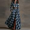 Damenmode Französisch Vintage Karomuster Taillenbetonendes Schlankmachendes Asymmetrisches Design Kragen Langarmkleid