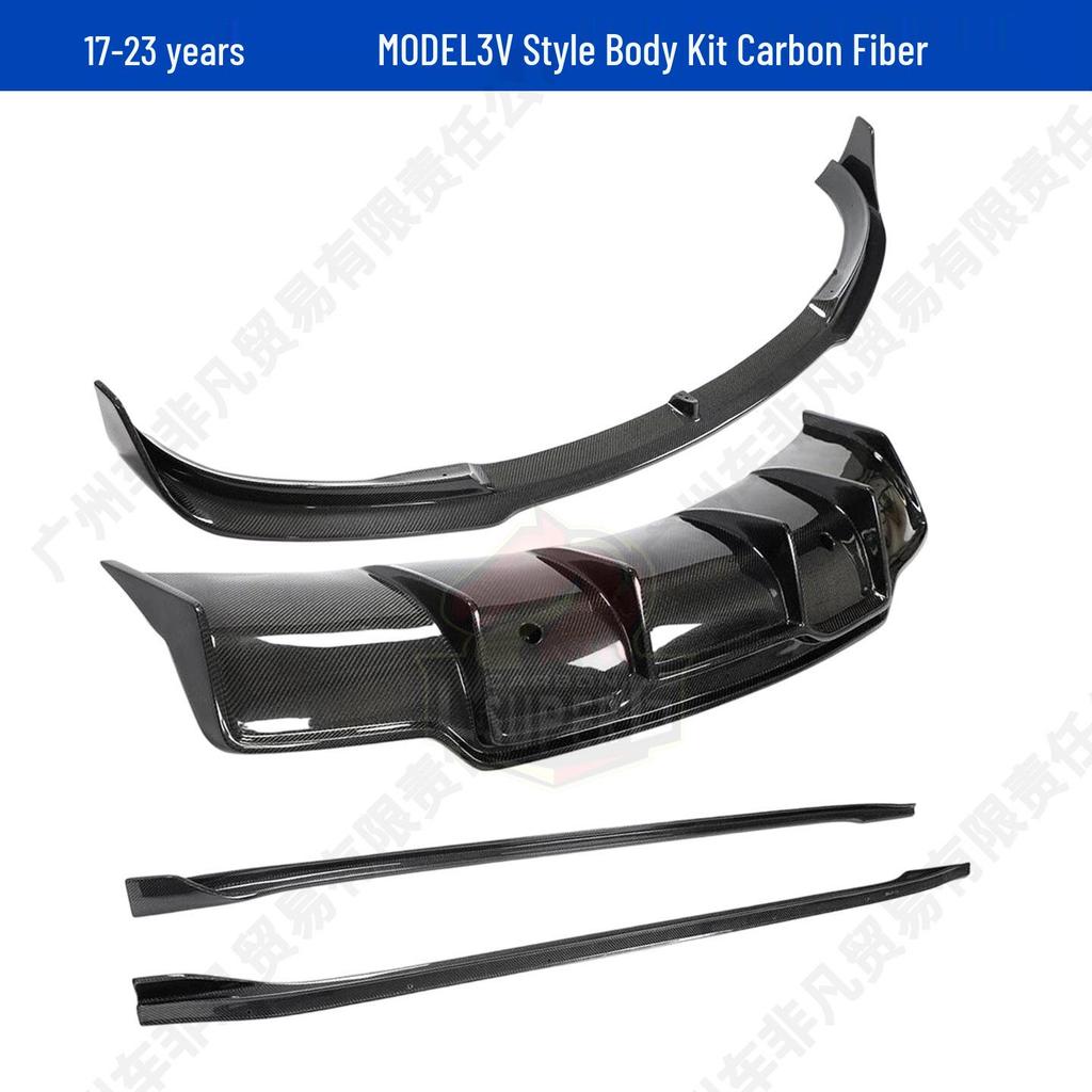 Tesla Model 3 V Style Carbon Fiber Front Lip & Side Skirts Kit