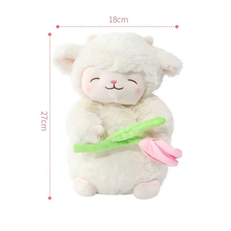 Kawaii Süßes Weißes Schaf Lamm Hält Tulpenblume Plüschpuppe Weiches Stofftier Lamm Mit Tulpe Plüschtier Niedliches Geschenk Für Kindergeburtstag