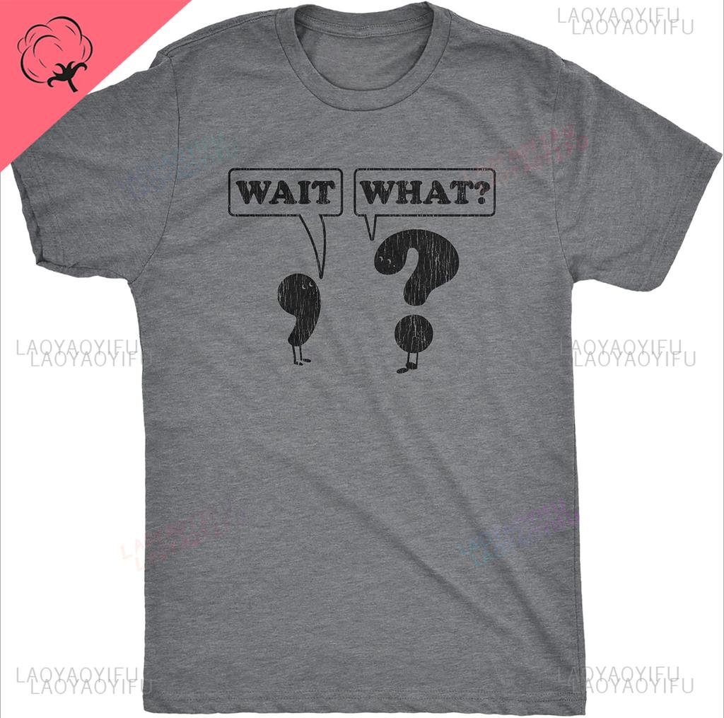 Herren Warte Was Lässiges Bedrucktes T-Shirt Lustige Fragezeichen Satzzeichen Grammatik Grafik Neuheit Streetwear Kurzarm Tee Oberteile