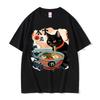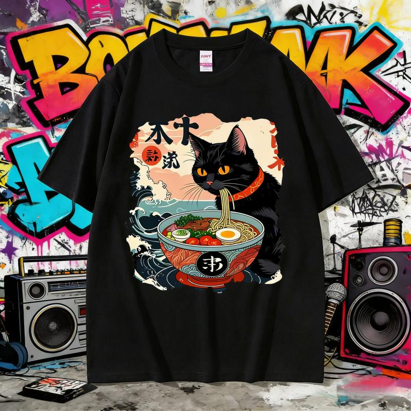 2025 Sommer Lustige Anime Ramen Katze Meme Vintage Japanisch Kawaii Nudelkatzen Grafik T-Shirts Herren Damen 100% Reine Baumwolle T-Shirt