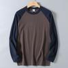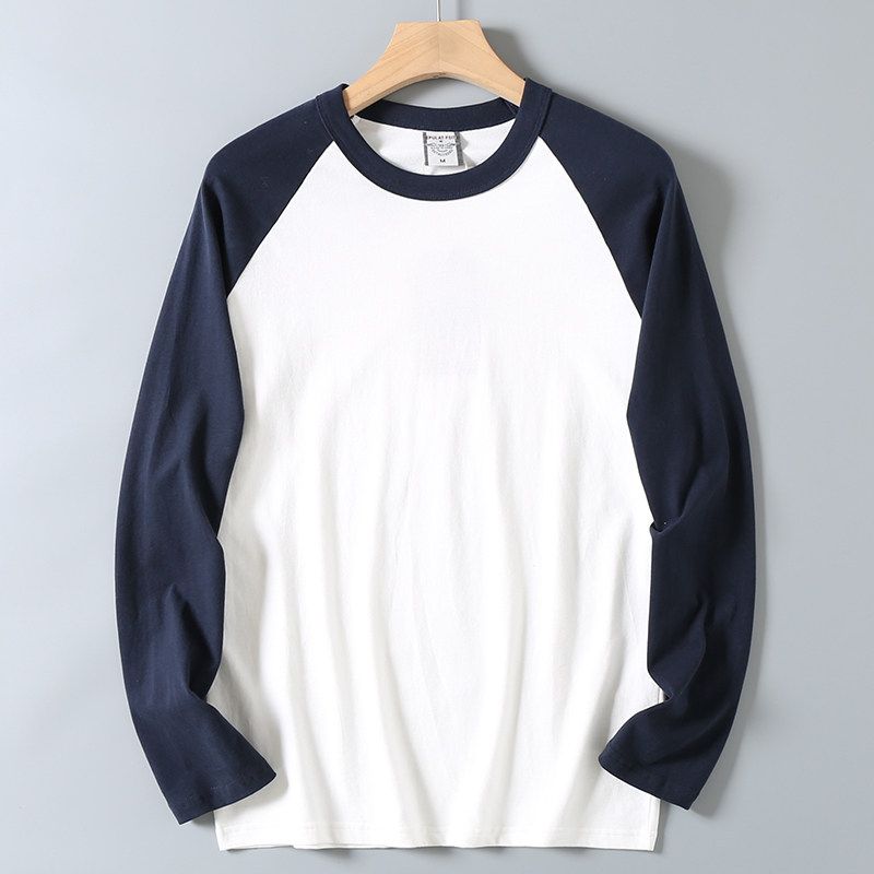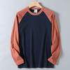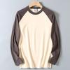 Style Pure Cotton Fashion Brushed Long Sleeve Spring and Autumn Bottoming Shirt Men's Solid Color Patchwork Raglan Sleeve Couple round Neck T-shirt