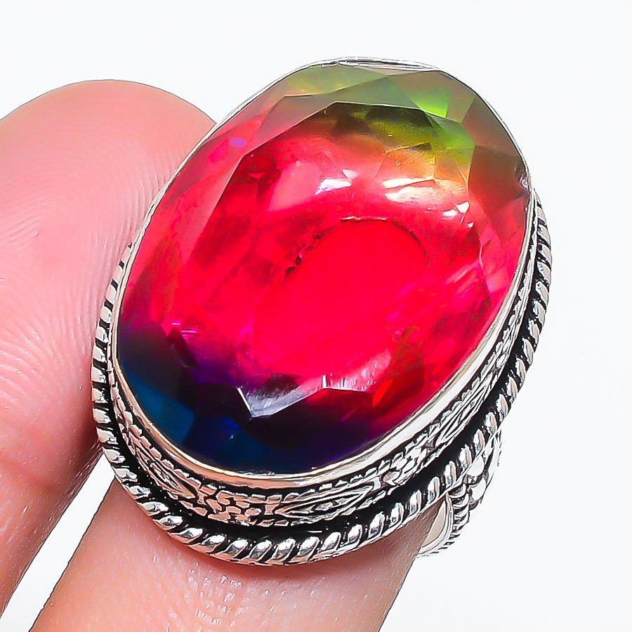 Natürlicher zweifarbiger Turmal 925er Sterlingsilber Schmuckring Größe 7 AR-16692
