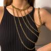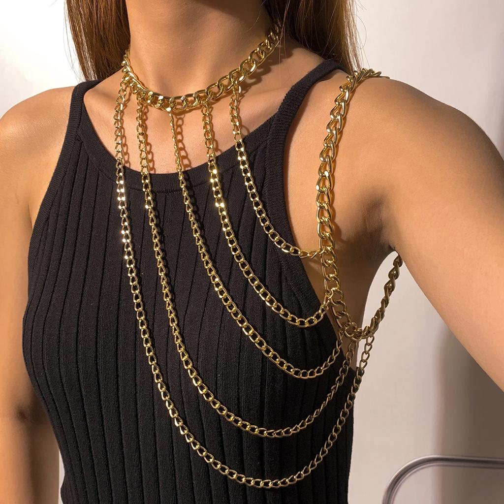 New Fashion Exaggeration Multi Layer Mental Thick Shoulder Chain Necklace for Women Elegant Shawl Gold Color Body Chain Jewelry
