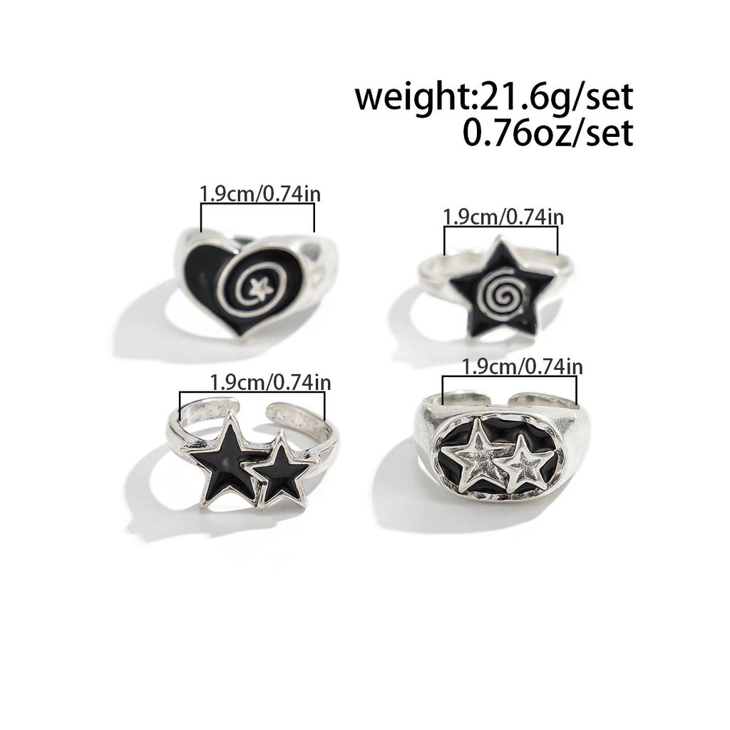 Dark Oil Drip Pentagram Ring Set for Men Hip Hop Niche Heart Ring Men's Jewelry