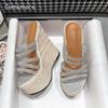 Modische Keilabsatz Hausschuhe 15CM Plateau Schuhe Sommer Strand Schuhwerk Damen Glitzer Riemen Lässige Pantoletten Pantuflas Mujer