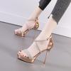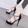 Sexy High Heels für Damen Offene Zehenpartie Kristall Kreuz Knöchelriemen Damenmode Plateau Sandalen Größe 34-39 Sandalias De Mujer