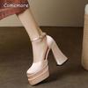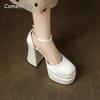 12cm Beige Plateau-Mary-Jane-Schuhe mit Knöchelriemen Elegante Plateau-Sandalen High-Heel-Pumps für Damen Zapatos De Mujer Größe 35