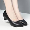 Women Black Shallow Mouth Low Heels Spring Autumn Fashion Round Head Thick Heeled Lightweight Work Office Single Shoes