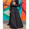 Neues, gelbes, hochtailliertes und dünnes, einfarbiges, temperamentvolles, retro-Chiffon-Langarm-Maxikleid