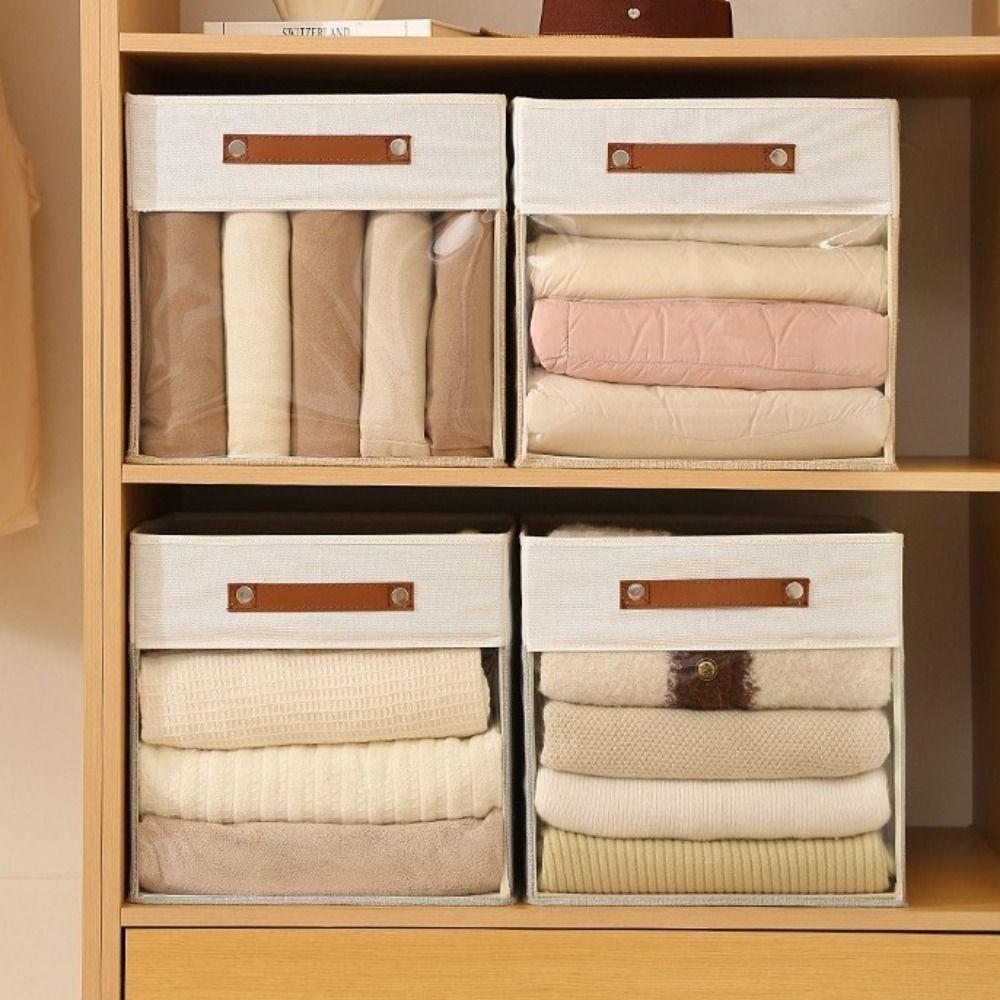 Non-woven Fabric Square Storage Box Large Capacity Folding Clear View Clothes Storage Box Stackable with Handle
