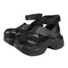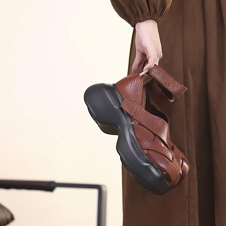 Johnature Echtes Leder Gewebte Schuhe mit dicker Sohle Retro Handgefertigte Damen Plateau-Sandalen