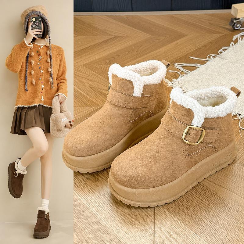 Fleece Plateau Schuhe Damen Neue Winter Ein-Pedal Faule Schuhe Verdickt Warm Schneestiefel