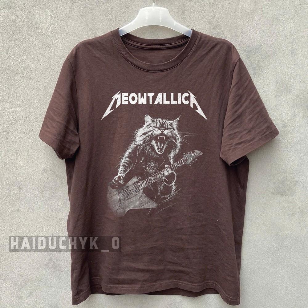 Meowtallic, Metallica Rock Katze spielt Gitarre Unisex Rostbraunes T-Shirt Größe S-5XL Unisex T-Shirt
