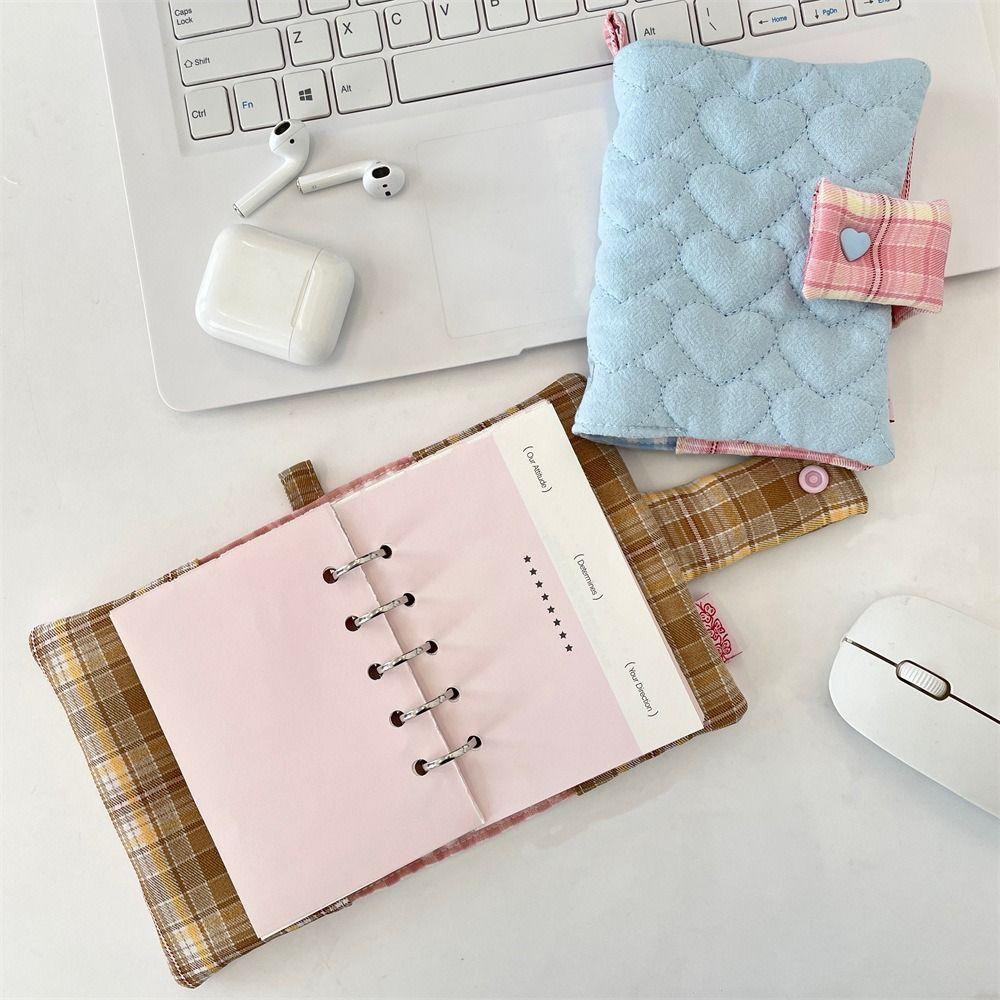 Multifunktionales Herz-Stickerei-Notizbuch Stoff Abnehmbares Tagebuch Kariertes Tagebuch Buch Fleckenbeständig Glattes Tagebuch Schutzhülle