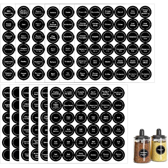 Savita 432 Pack Pre-Printed 1.4" Round Spice Jar Labels Seasoning Labels for Spice Rack (Black)