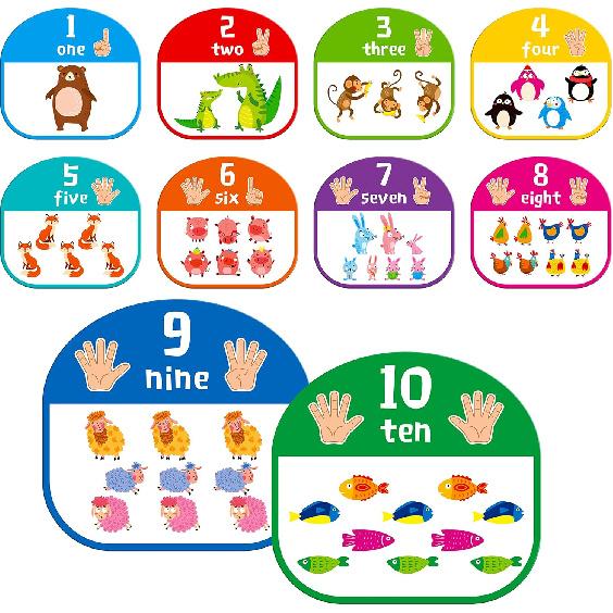 10 PCS Number Posters, Numbers Learning Bulletin Board Set School Decoration Supplies Educational Teaching Tool for Toddler Kid Family Classroom,