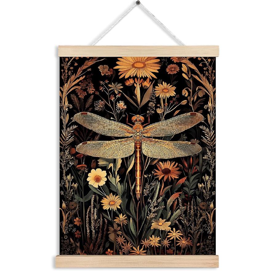 FITIE Vintage Moody Floral Dragonfly Canvas Wall Art Poster, Retro William Morris pired Cottagecore Flower Botanical Dragonfly Wall Decor Prints for