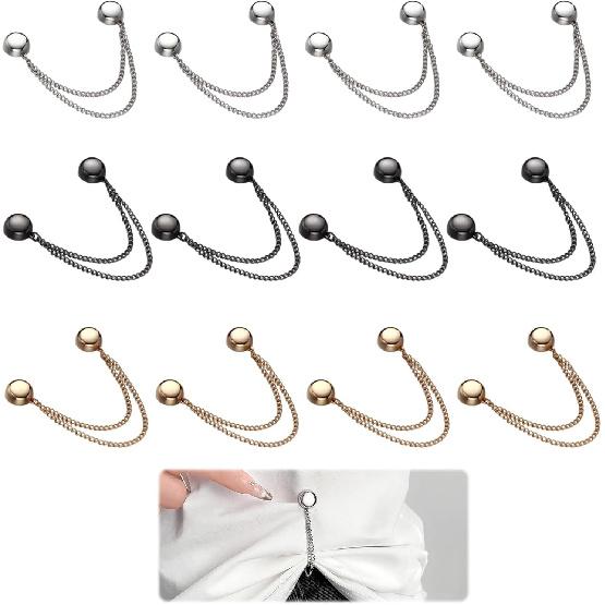 12 Pcs Magnetic Clothing Clips with Chain, Metal Magnetic Clothing Clips for Women in Gunmetal Gold Silver, Multi Use P for Clothes to Adjust Hem