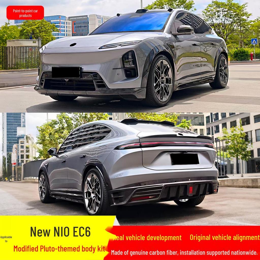 Compatible with NIO EC6: Modified Pluto Style Front Lip, Rear Lip, Top Wing, Tail Wing, Wind Deflector, Fender Trim, and Mirror Cover Kit.