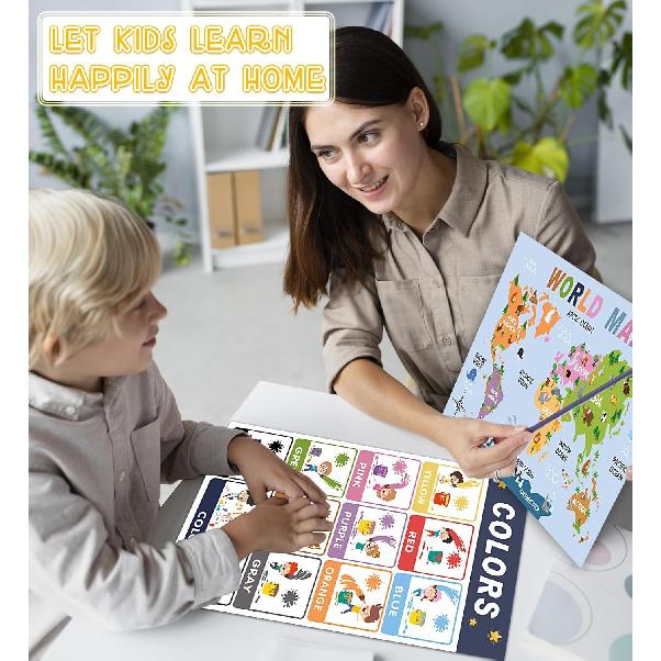 Rovytix 16 Educational Posters for Preschool & Kindergarten, Laminated Classroom Charts for ABC Alphabet, Numbers, Shapes, Days of the Week, Weather,