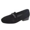Damen Wildleder Flache Einzelne Schuhe Frühling Neue Mode Damen Quadratische Zehenpartie Weiche Sohle Loafer Vielseitig zum Hineinschlüpfen Schwarze Abriebfeste Schuhe
