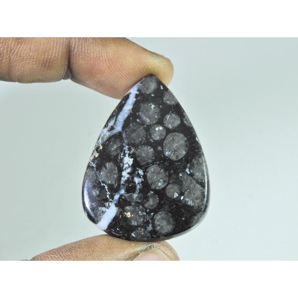 44Cts. Natural Black Fossil Coral Pear Cabochon Loose Gemstone 28X39X04 MM B-336