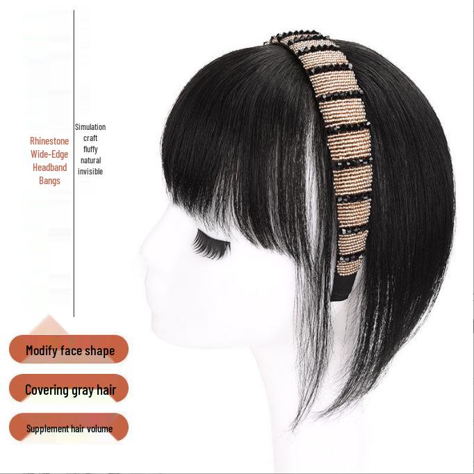 Damen-Haarreif mit Strasssteinen und lockigem Haar mit Pony - Volumensteigerndes Haarteil zum Kaschieren von weißem Haar