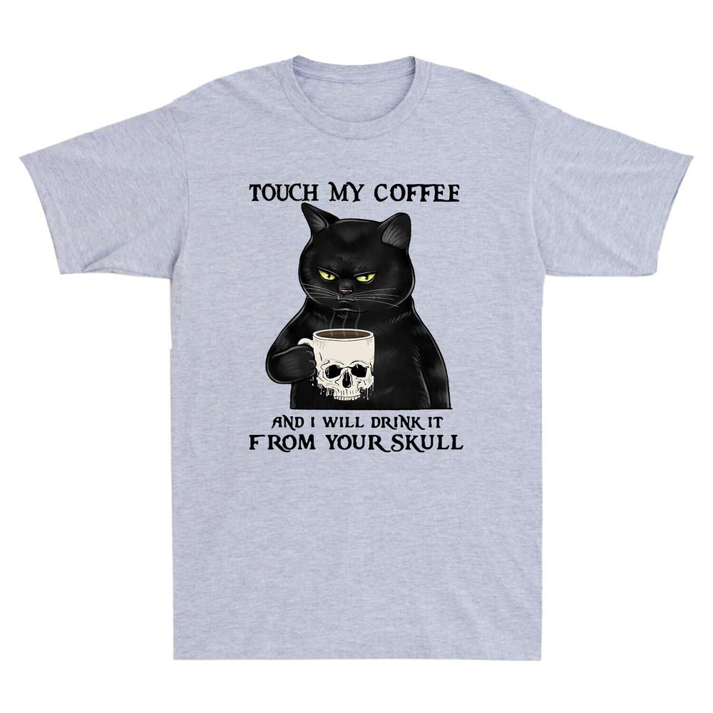 Black Cat Touch My Coffee And I Will Drink It From Your Skull Funny Men T-shirt Unisex T-Shirt