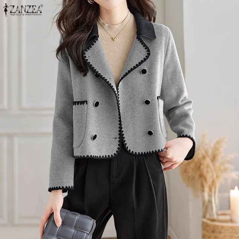 ZANZEA Lässige Damen-Cardigan-Jacken mit Umlegekragen und langen Ärmeln