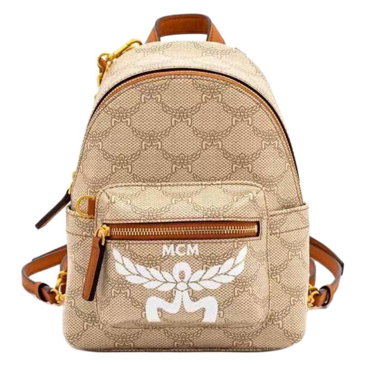 MCM Stark Lauretos Monogram Coated Canvas And Leather Mini Backpack Women Backpack Beige MMKESVE03I9001