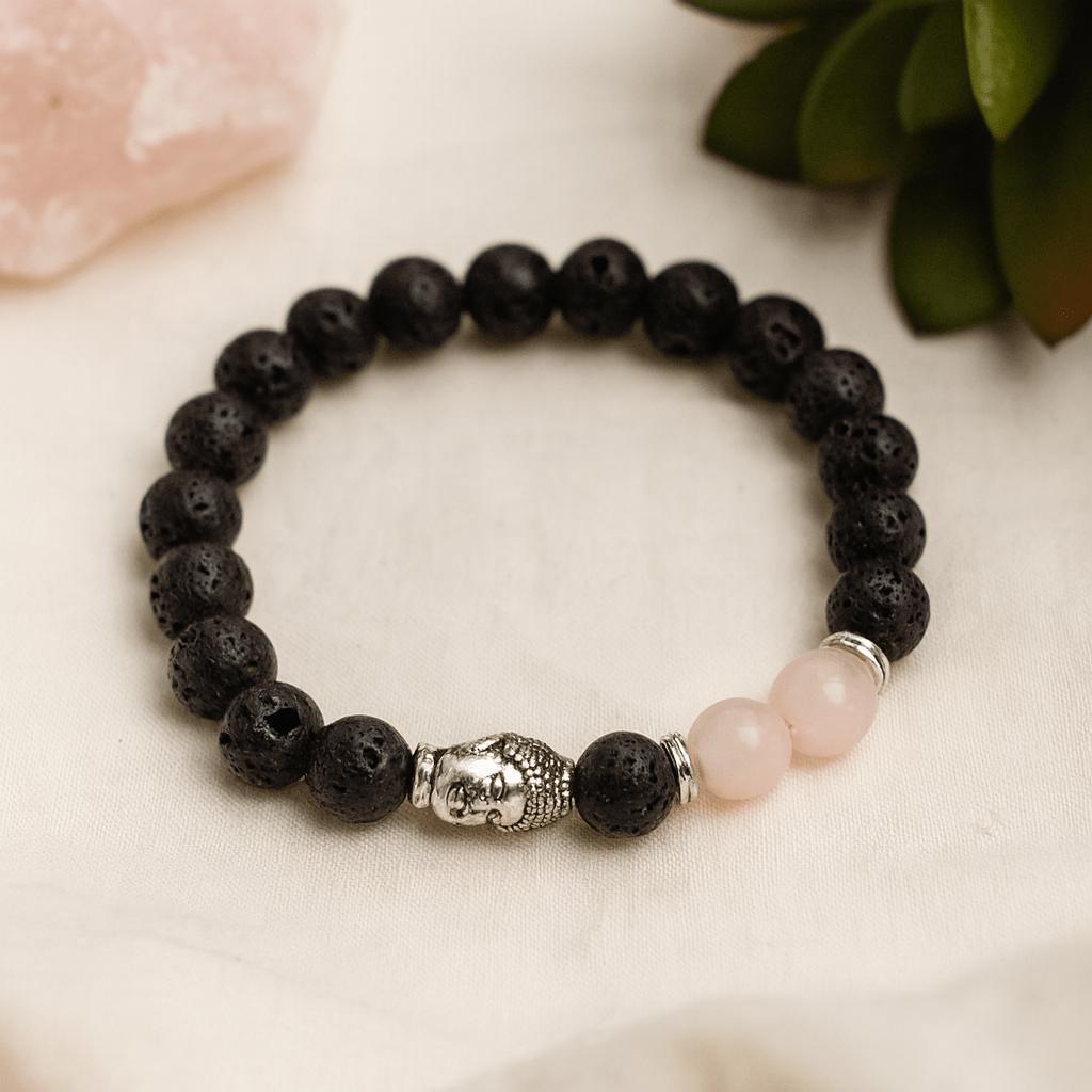 Lava-Stein-Armband mit Buddha Rosenquarz