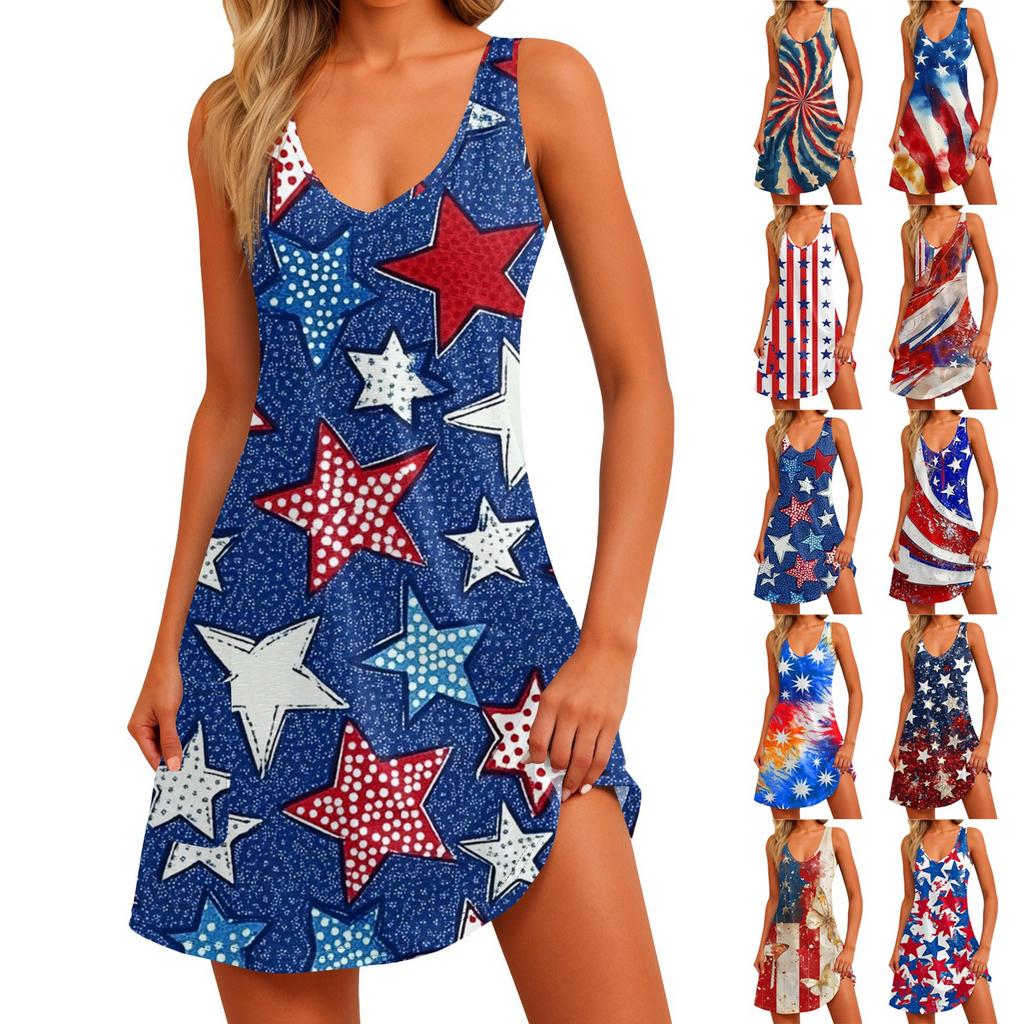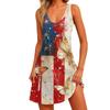 Damen Sommerkleid mit Print und Taschen, lässig, Sommer, Boho, Strandkleid, T-Shirt-Kleid, V-Ausschnitt, lockere Tanktop-Kleider