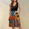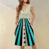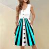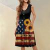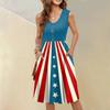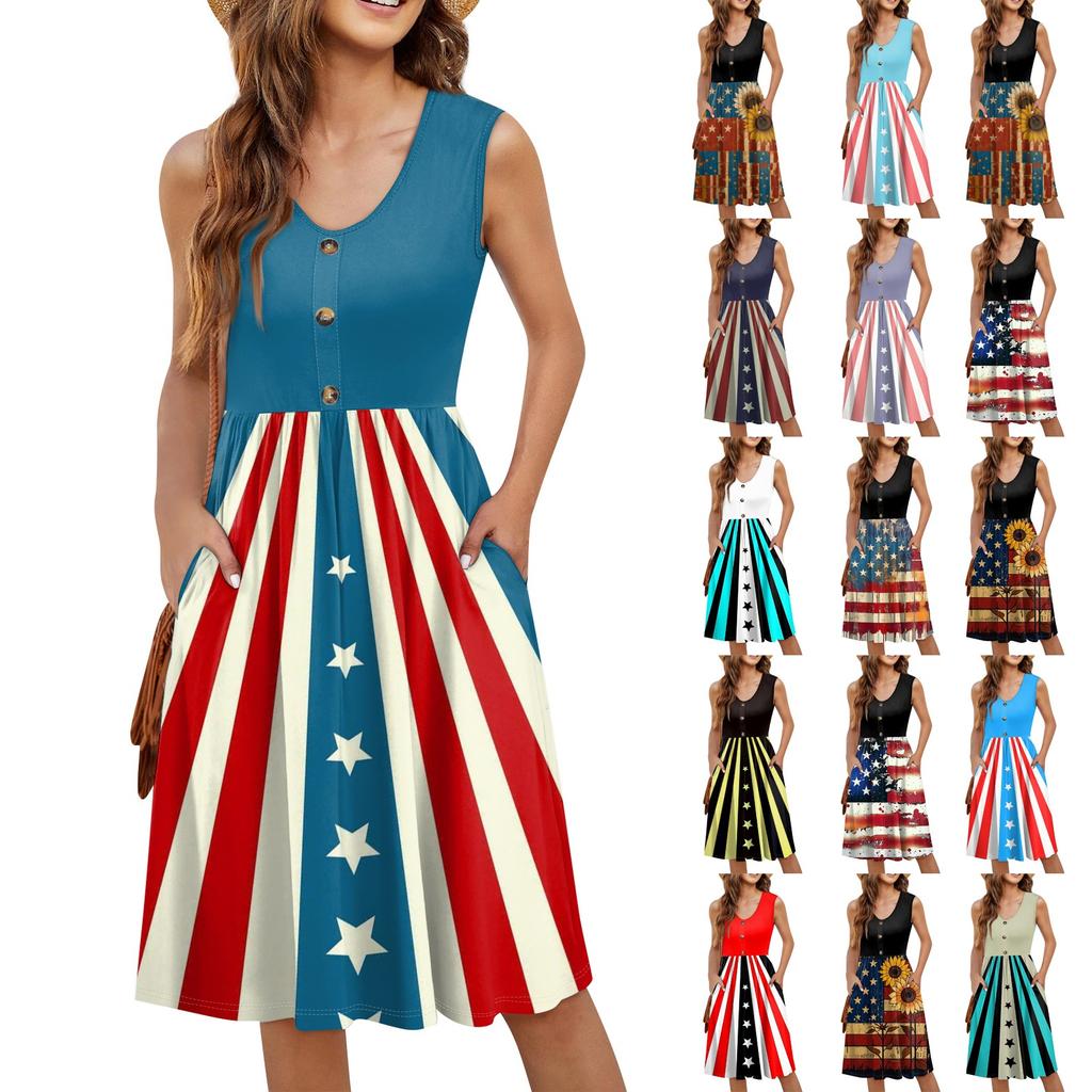 Ärmelloses lässiges Urlaubs-Midi-Kleid mit Knopfleiste, Schwing-Schnitt, Unabhängigkeitstag-Print und Taschen für Damen