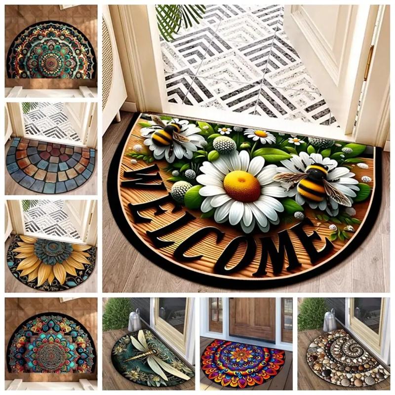 Kieselgur & Gummi Halbrunde Fußmatte Boho Waschbare Tür Matte Blume Floral Saugfähige Eingangsmatte Innen Außen