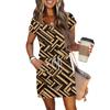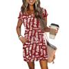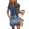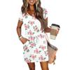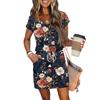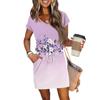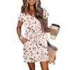 Damen Sommer V-Ausschnitt Lässig Kurzarm Kordelzug Mit Tasche Vintage Blumenkleider