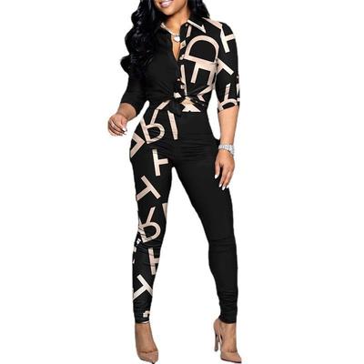 Damen Jumpsuit V-Ausschnitt Hohe Taille Polyester Lange Hosen Sexy Büro Romper für den täglichen Gebrauch