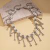Diamantbesetzte Imitationsperlen geometrische Fransen Halskette Retro exquisite Schlüsselbein Kette Halskette