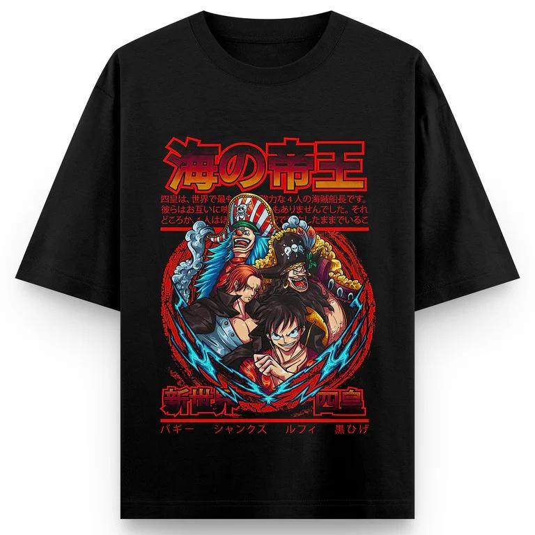 One Piece Anime Vier Kaiser Druck Oversize Baumwoll T-Shirt Herren und Damen Harajuku Trend Y2K Lässig Sommer Schweißabsorbierend T-Shirts