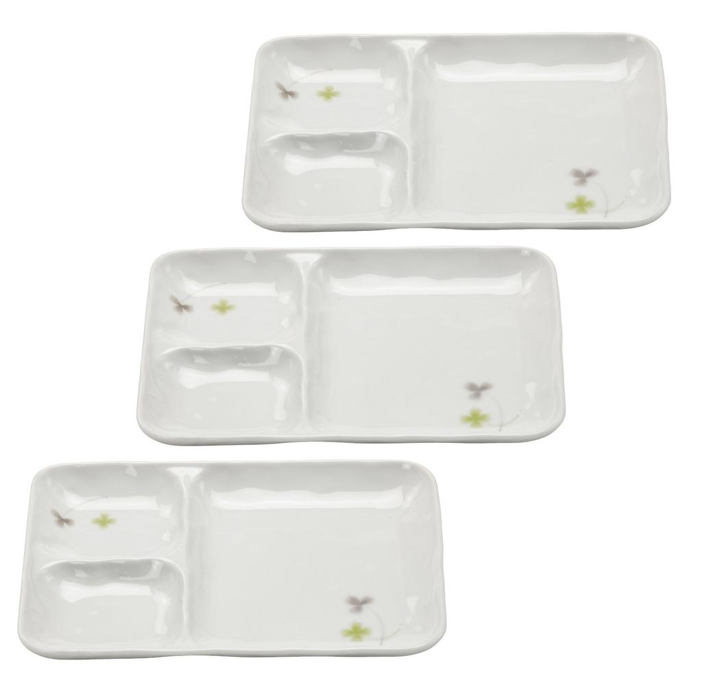 Mino ware rectangular lunch plate, set of 3, clover design, 139544(3)
